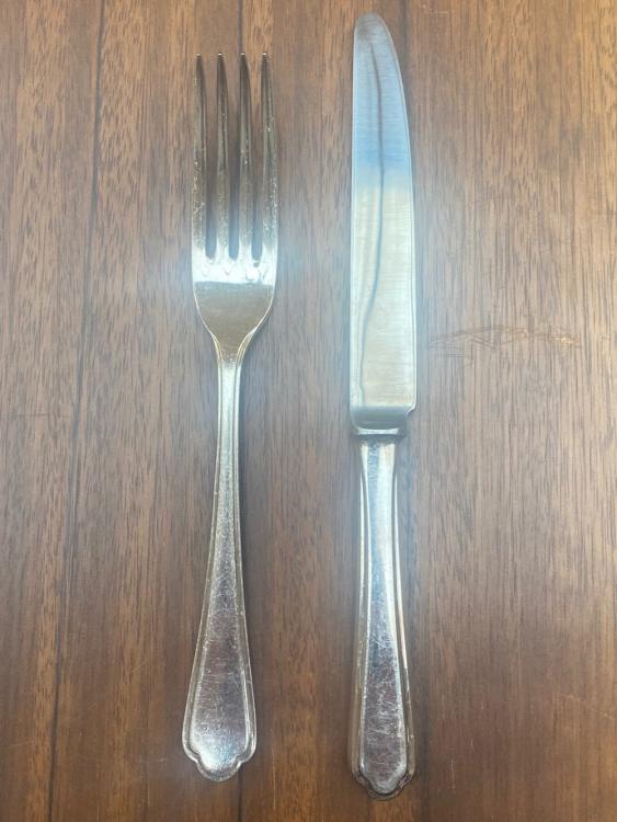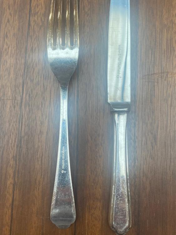 Lot 30 of 2439: WALKER & HALL; a silver plated part cutlery service comprising twelve dinner forks, twelve dessert forks, twelve dessert spoons, twelve soup spoons, twelve teaspoons, and twelve dessert knives and twelve table knives with stainless steel blades, with an assortment of knives.