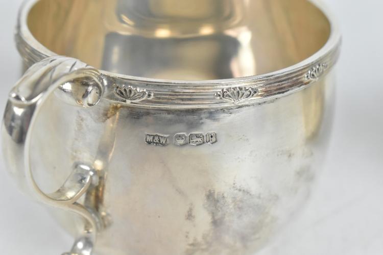 Lot 39 of 2439: MAPPIN & WEBB; a George V hallmarked silver three piece bachelor's tea set, comprising teapot, sugar bowl and jug, the teapot with turned wood finial and handle, Sheffield 1932, combined weight 22ozt/690g (3).