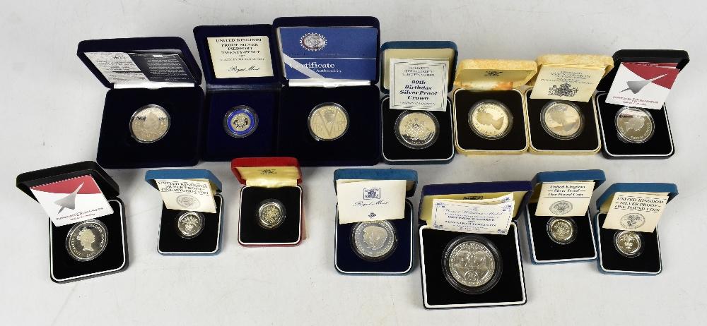 Lot 789 of 2439: A mixed collection of silver proof coins including Royal Wedding, 2 x Queen Elizabeth The Queen Mother birthday crowns, Solomon Islands $25 proof coins, anniversary crowns, also a 5 coin.