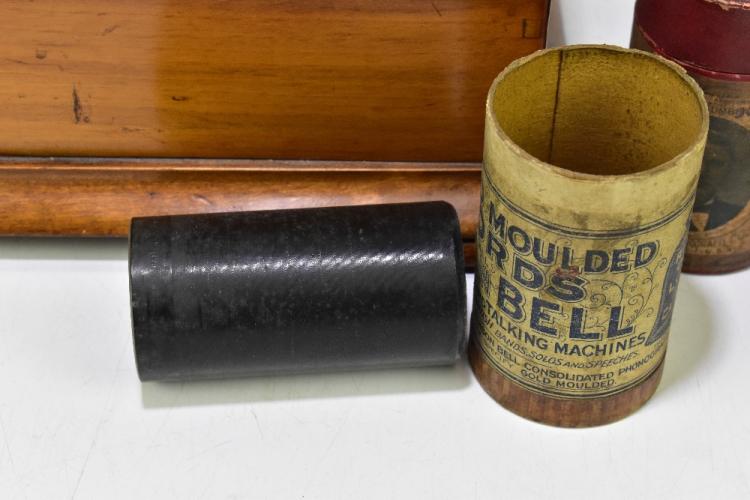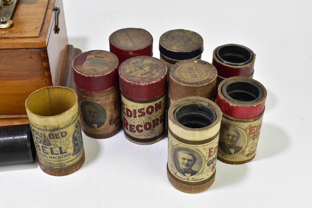 Lot 1138 of 2439: PATHE FRERES; a walnut cased cylinder phonograph no.1106 and sold with a small number of cylinders, width of case 34.5cm.