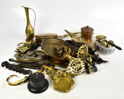 Lot 1209 of 2439: A collection of 19th century and later metal wares including a brass skillet, a brass chestnut roaster, etc.