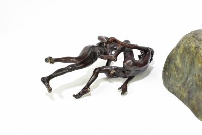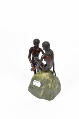 Lot 1211 of 2439: A contemporary bronze sculpture of two nude females, one seated on a detachable rock, height 20cm, apparently unmarked.