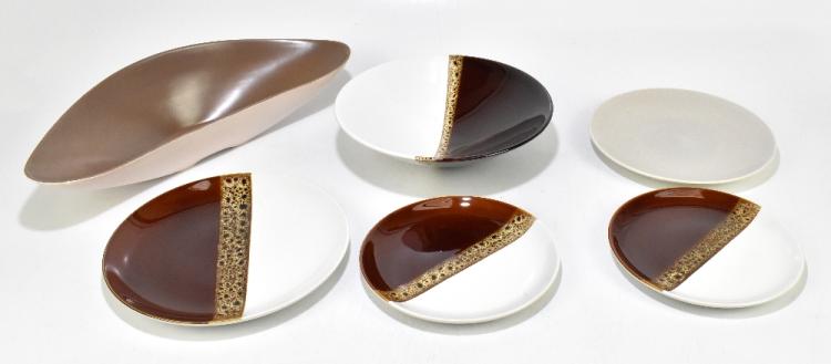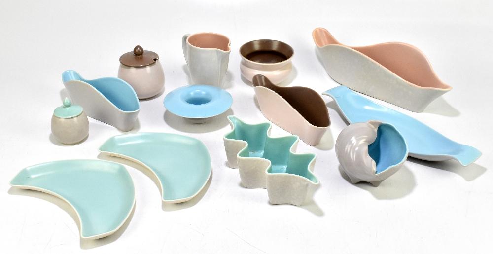 Lot 641 of 1972: POOLE POTTERY; a collection of 1950s Poole Pottery including 'Freeform' bowls, a dish in the form of a shell, etc.