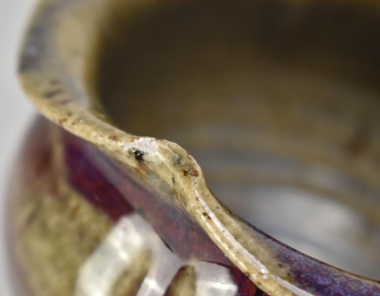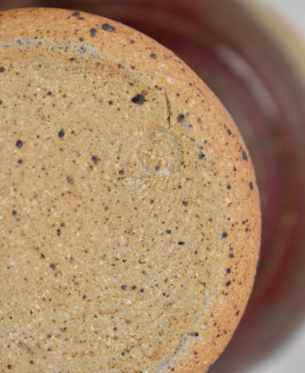 Lot 19 of 947: ADRIAN LEWIS-EVANS (1927-2021); a stoneware chalice with wavy rim partially covered in copper red glaze, impressed ALE mark, height 20cm. (D)