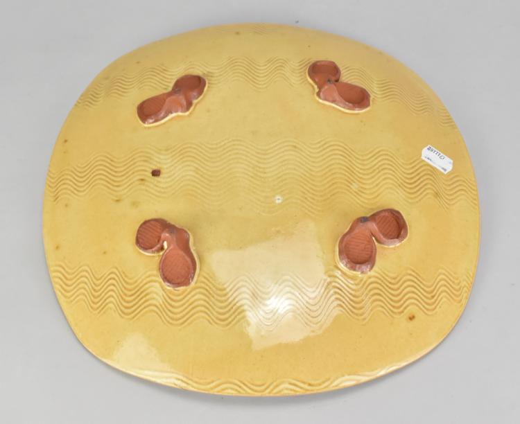 Lot 923 of 947: A slip decorated earthenware footed platter, impressed mark, diameter 32cm.