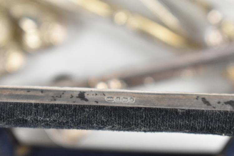 Lot 39 of 4047: A George V hallmarked silver mounted oak photograph frame, Chester 1919, length 17cm, with a selection of silver plated items including cutlery, and a six division toast rack.