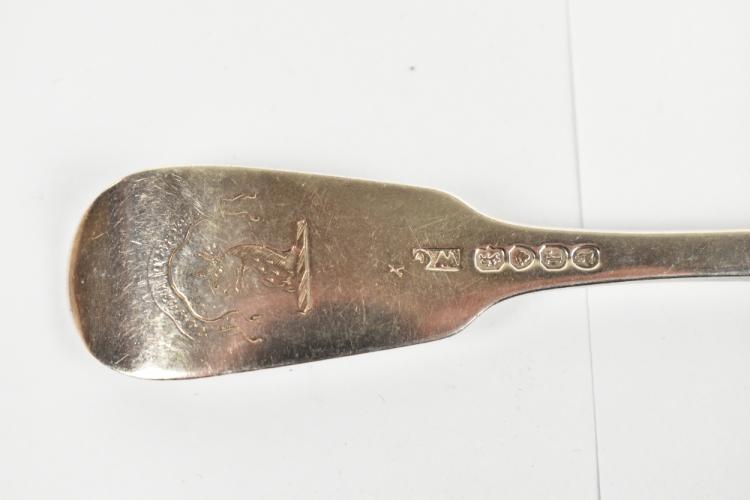 Lot 53 of 4047: WILLIAM CHAWNER; a set of twelve William IV hallmarked silver table forks with engraved crest of the back of the Fiddle pattern terminals, London 1832, length 20cm, approx. 28.6ozt/890g.