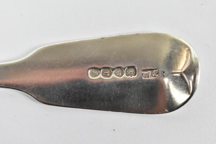 Lot 55 of 4047: WILLIAM CHAWNER; a set of twelve William IV hallmarked silver tablespoons, London 1832, each with engraved crest to Fiddle pattern terminal, length 22cm and a similar associated spoon, combined approx. 30.6ozt/952g, length of spoon 22cm.