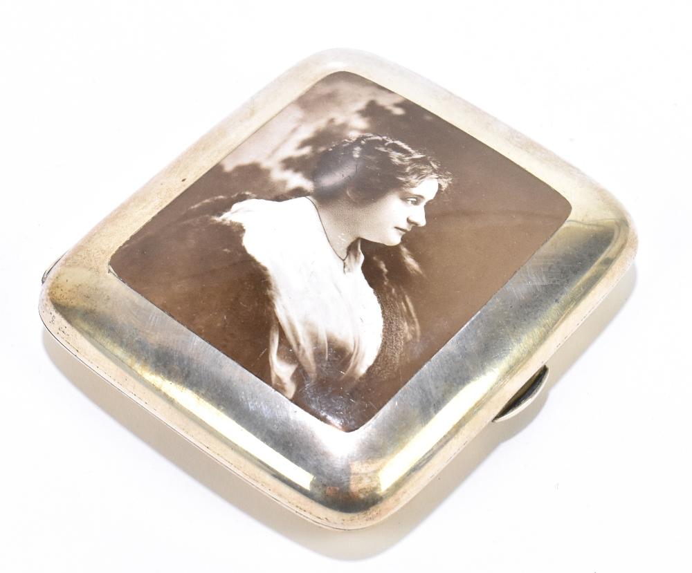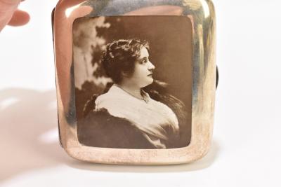 Lot 66 of 4047: COLEN HEWER CHESHIRE; an Edward VII hallmarked silver and enamel cigarette case, the front decorated with a black and white portrait of a lady, Chester 1909, gross 4.0ozt /125g, height 9cm