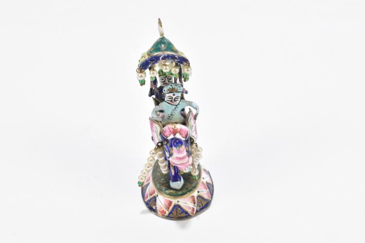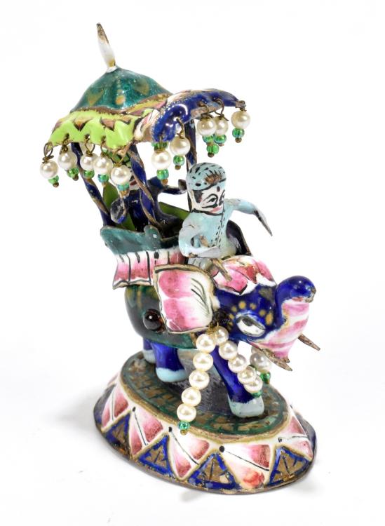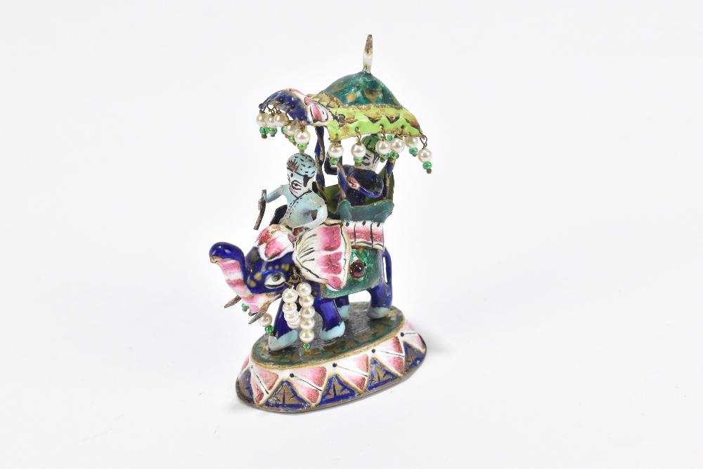 Lot 69 of 4047: An Indian white metal and enamel elephant group, unmarked, height 7.5cm