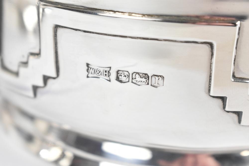 Lot 474 of 4047: WALKER & HALL; a George V hallmarked silver Art Deco four piece tea service with moulded geometric decoration, Sheffield 1934, approx. 48ozt/1502.3g (4).