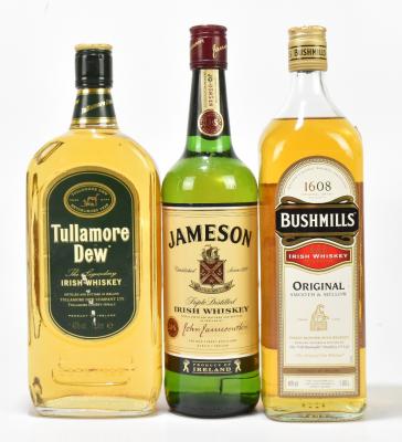 Lot 5058 of 4047: WHISKEY; three bottles comprising Tullamore Dew, the legendary Irish whiskey, 43%, 1l, Bushmills Original Irish whiskey, 40%, 1l, Jameson, 40%, 700ml (3).