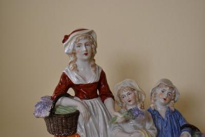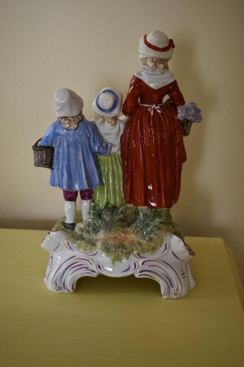 Lot 76 of 249: An early 20th century Continental porcelain figure group advertising 'Yardley's Old English Lavender', impressed mark to base, height 31cm. Provenance: The contents of a Cheshire Country House.