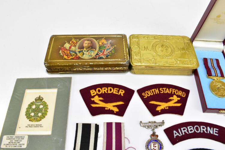 Lot 16 of 2140: A WWI 1914 Christmas tin, with a further tin, a German cross, and other items.
