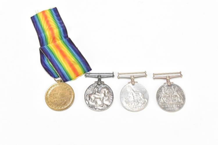 Lot 24 of 2140: Two WWI medals awarded to GNR.J.MATHER.R.A, also two WWII Defence medals (4).