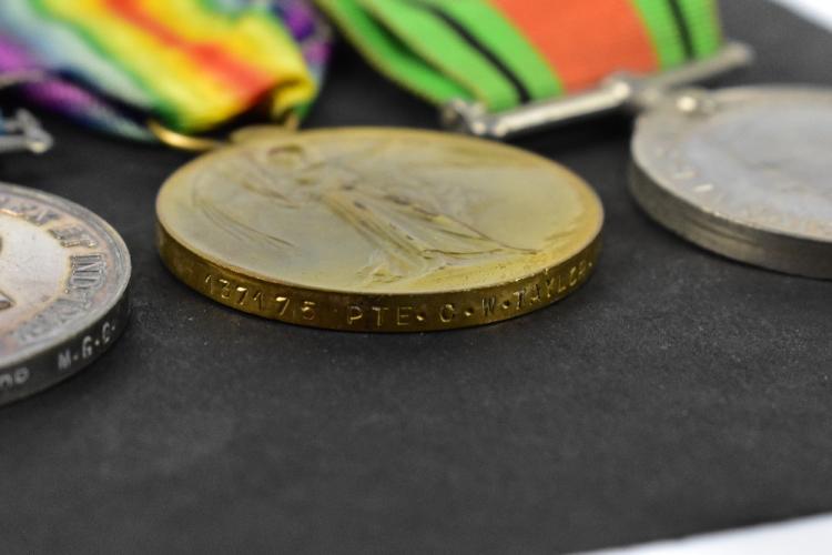 Lot 27 of 2140: A WWI and WWII medal group awarded to 137175 Pte C.W. Taylor M.G.C., comprising BWM, VM, and DM.