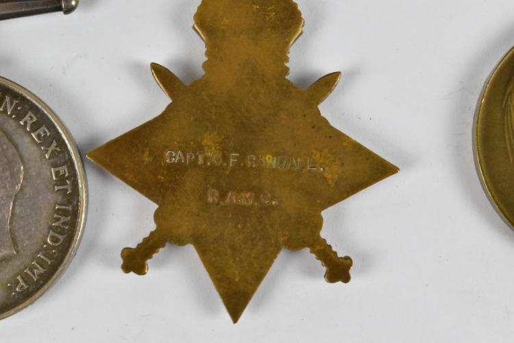 Lot 30 of 2140: A WWI medal group awarded to Captain G.F. Randall R.A.M.C., comprising 1914 Star, BWM, and VM, with a George VI Coronation medal, a Queen Victoria 1897 Jubilee medallion in leather case, etc.