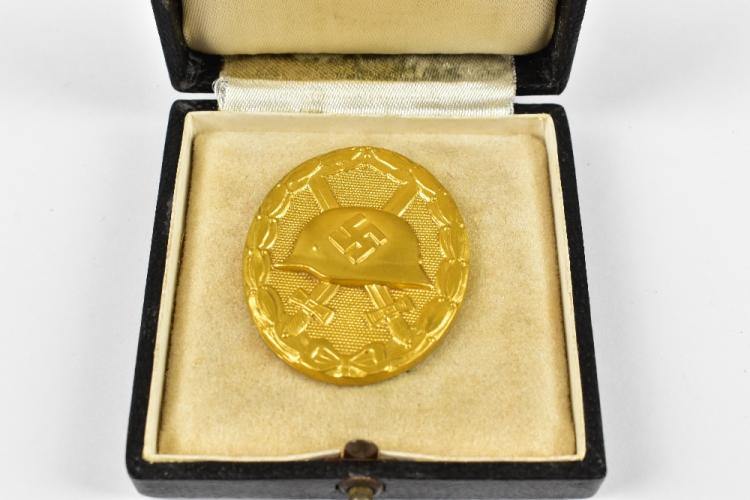 Lot 48 of 2140: A WWII German 'gold' level wound badge, in box with 'Hauptmunzamt' label (1).