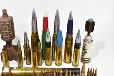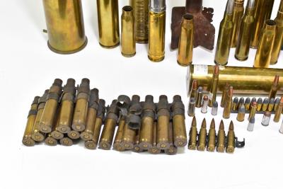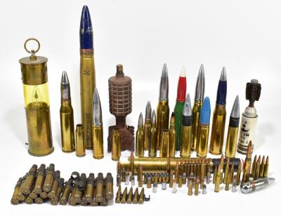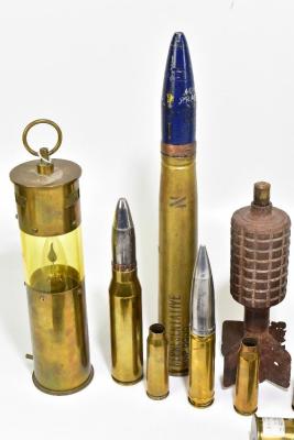 Lot 85 of 2140: A selection of inert military shells, including a German WWI Granatenwerfer.