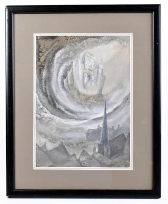 Lot 427 of 2140: MICHAEL WARRE; gouache, fantasy scene, supposedly an illustration for an unpublished poem by Michael Burne, unsigned 33 x 24cm, framed and glazed. (D)