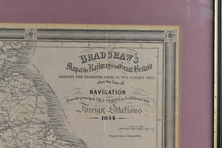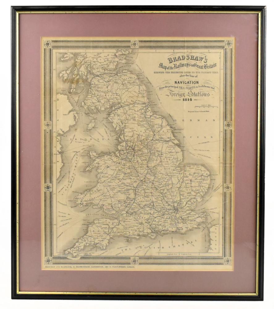 Lot 549 of 2140: BRADSHAW'S; a 19th century map of the railways in Great Britain, 38 x 47cm, framed and glazed.