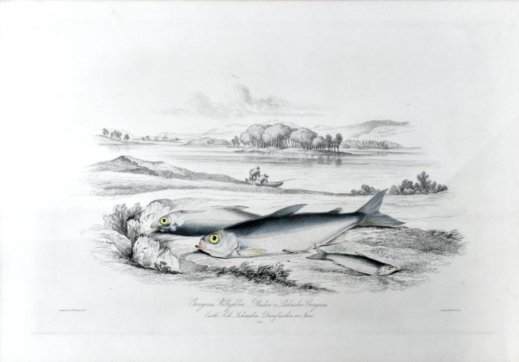 Lot 556 of 2140: W.H. LIZARS AFTER WILLIAM JARDINE; a collection of five hand coloured engravings of fish, numbers 1, 2, 4, 5, and 6, 38 x 54cm, framed and glazed.
