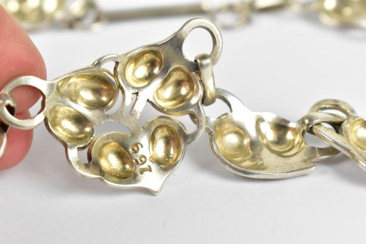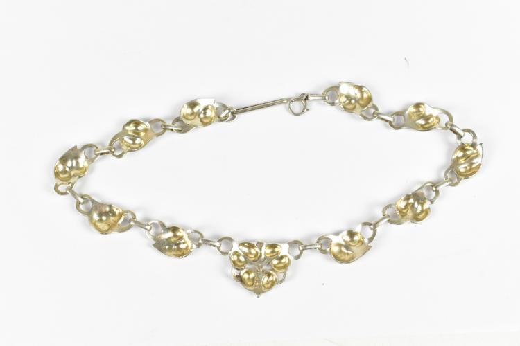 Lot 15A of 2140: A sterling silver necklace with cast floral decoration in the Art Nouveau style, length 40cm, approximate weight 49.7g.