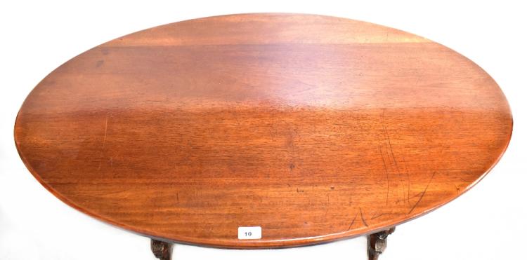 Lot 10 of 854: A 19th century mahogany oval top centre table with turned side columns and turned stretcher, 68 x 63 x 106cm.