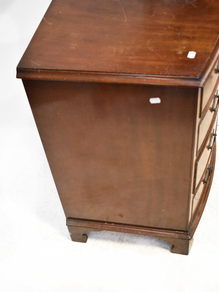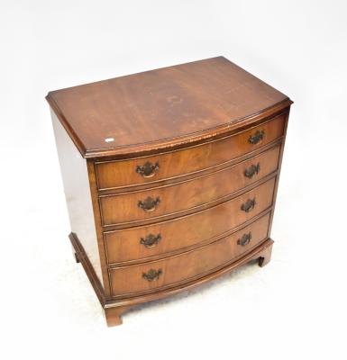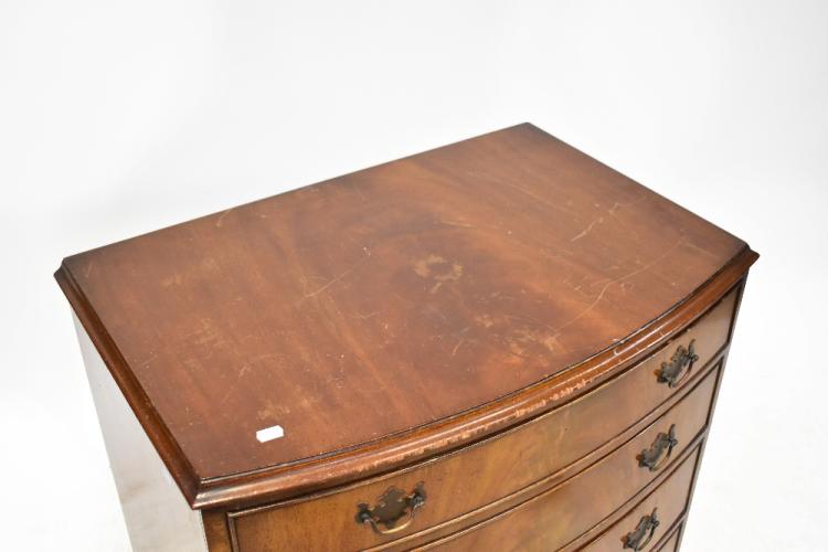 Lot 57 of 1095: An early 20th century mahogany bow-fronted chest of four graduated drawers, raised on bracket feet, 83 x 79 x 54cm (af).