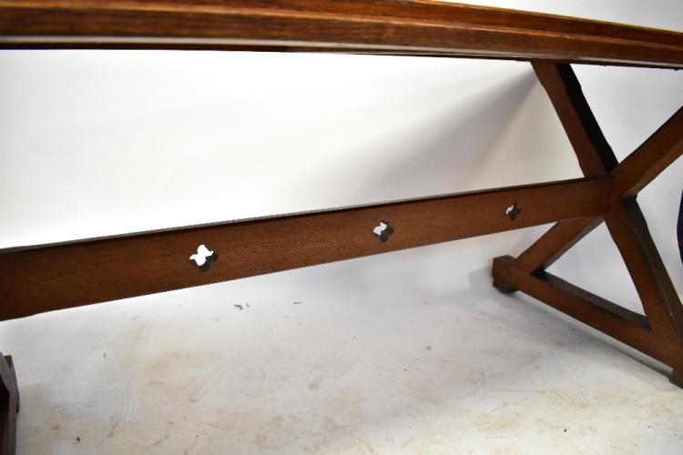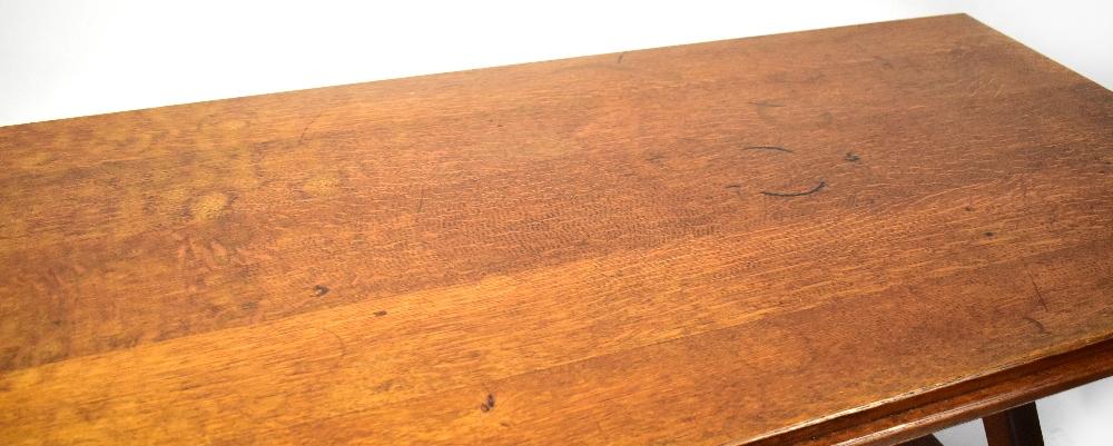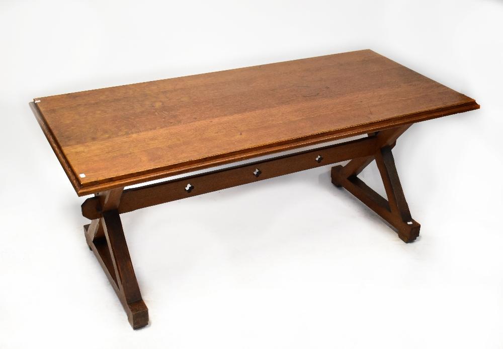 Lot 59 of 1095: An early 20th century oak Refectory table with X-framed stretchered supports, 81 x 191 x 89cm.