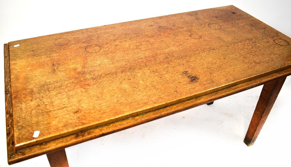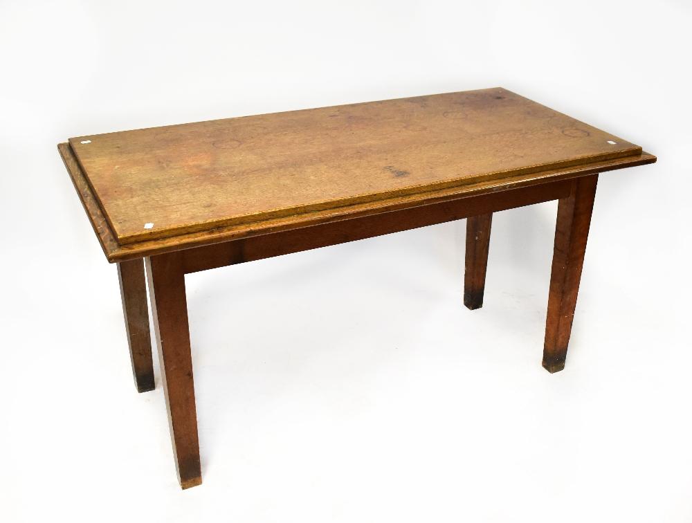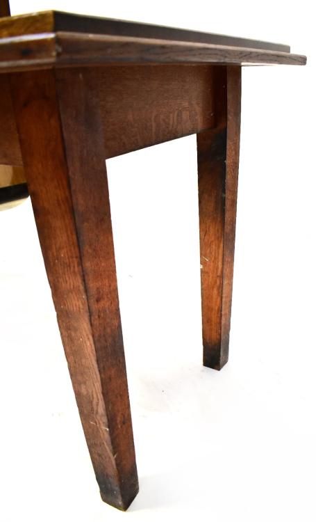Lot 60 of 1095: An early 20th century oak dining table raised on tapering square section supports, 79 x 146 x 73cm.