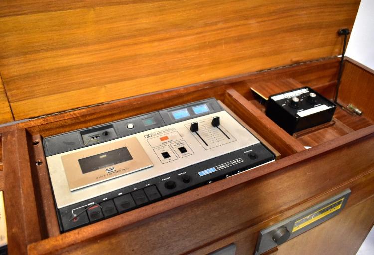 Lot 596 of 1095: A Garrard 401 turntable with Decca Professional Tonearm, a Quad 303 amplifier, 33 preamp, an FM3 tuner and a TASC AM tape deck, all in a bespoke cabinet, 94 x 140 x 46cm.
