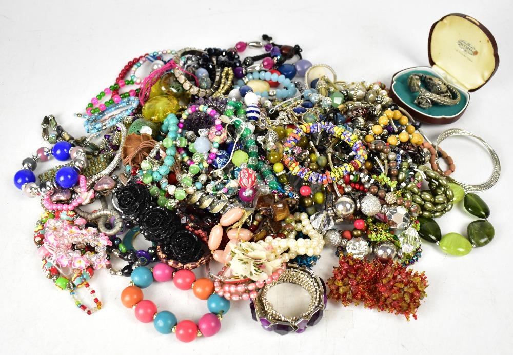 Lot 1004 of 1095: A large quantity of costume jewellery to include necklaces, bracelets, diamanté jewellery, brooches, etc.