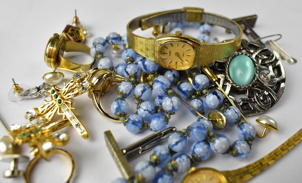 Lot 1023 of 1095: A quantity of costume jewellery to include a ring watch, white metal earrings, etc.