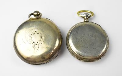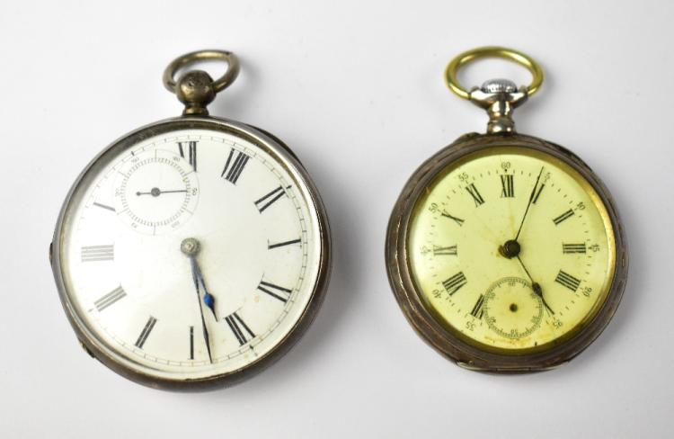 Lot 1036 of 1095: WALTHAM MASS; a silver cased open face pocket watch, the white dial set with Roman numerals and smaller subsidiary seconds dial and an 800 grade silver Minerva VA open face pocket watch, the dial set with Roman numerals and smaller subsidiary seconds dial, with five-minute track (2).