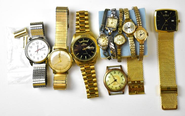 Lot 1075 of 1095: Various gentlemen's watches to include a Services seventeen jewel Incabloc on bracelet strap, an Ensign water protected shock protected seventeen jewel watch head, a Timex example and two others, together with five vintage ladies' wristwatches to include Sekonda, Oris and Craftsman examples.