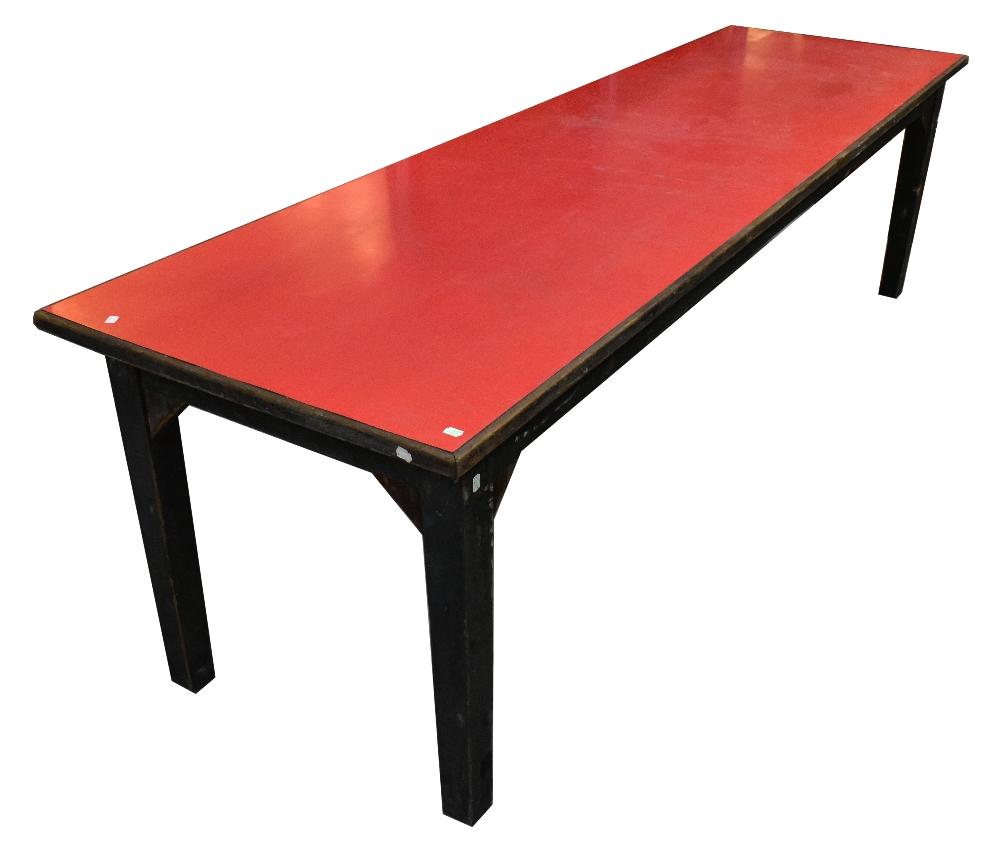 Lot 48 of 1061: A very large Formica topped workbench/table, 80 x 278 x 80cm.