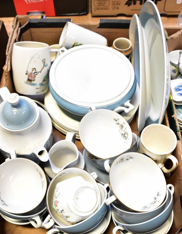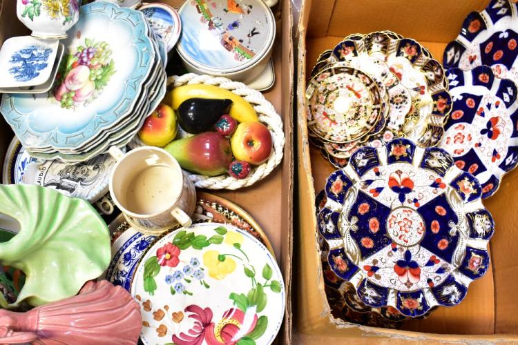 Lot 227 of 1493: A mixed lot of ceramics to include Royal Crown Derby and other Imari plates and tazzas, Villeroy & Boch 'Les Quatres Saisons' plates, a Villeroy & Boch 'Naif' tray, twin-handled dish and two covered pots and a variety of other decorative plates, Royal Doulton 'Rose Elegans' part tea service, etc (3).
