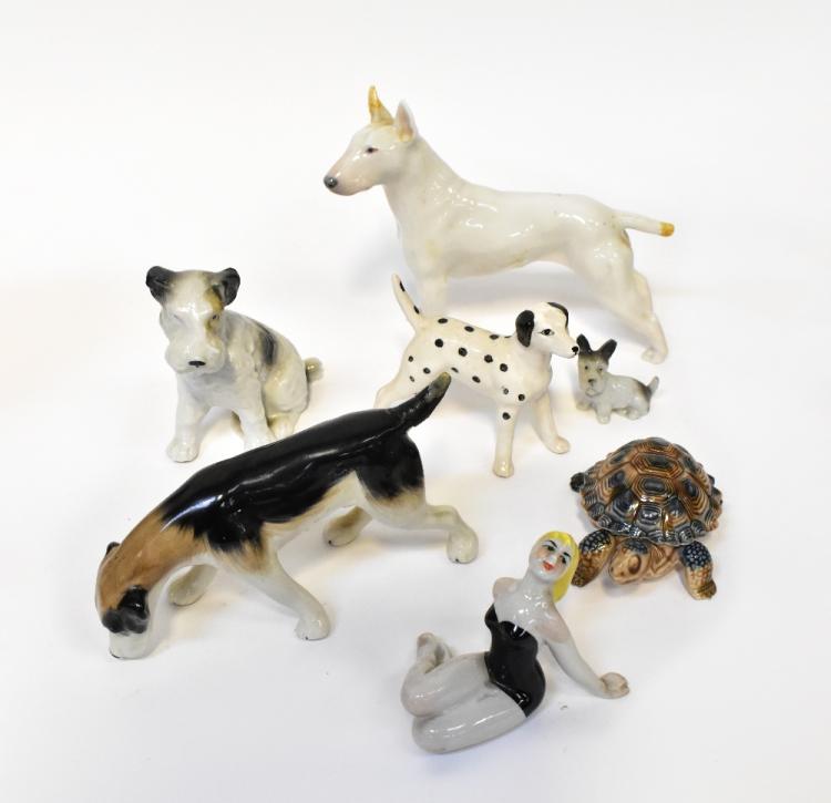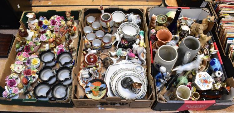 Lot 228 of 1493: A mixed lot of ceramics to include Hummel figures, floral encrusted items, Japanese tea service, various model animals including Hornsea, Sylvac, etc (3).