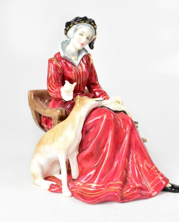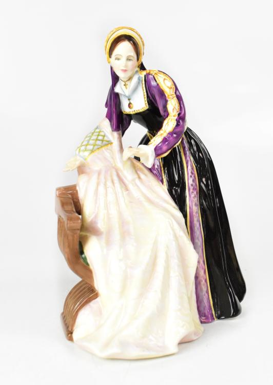 Lot 249 of 1493: ROYAL DOULTON; Henry VII and his six wives, HN3350 Henry VIII, no.810/1991, HN3233 Catherine of Aragon, no.415/9500, HN3232 Anne Boleyn, no.3365/9500, HN3349, Jane Seymour, no.1688/9500, HN3356 Anne of Cleves, no.1552/9500, HN3449 Catherine Howard, no.240/9500 and HN3450 Catherine Parr, no.326/9500 (7).