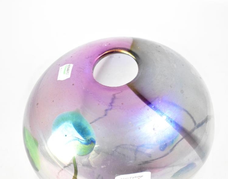 Lot 264 of 1493: JOHN DITCHFIELD; a large ovoid iridescent glass vase with honesty leaf decoration in the Art Nouveau style, engraved signature to base 'John Ditchfield 1982', height approx 28cm.