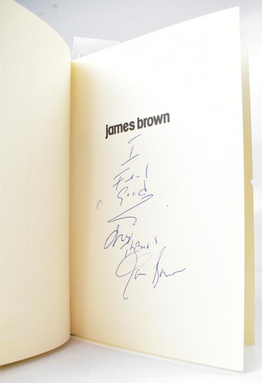 Lot 637 of 1493: JAMES BROWN; 'The Godfather of Soul', a biography bearing the star's signature, inscribed 'I feel good'. We have not authenticated this signature, please satisfy yourself as to the veracity of the item prior to bidding.