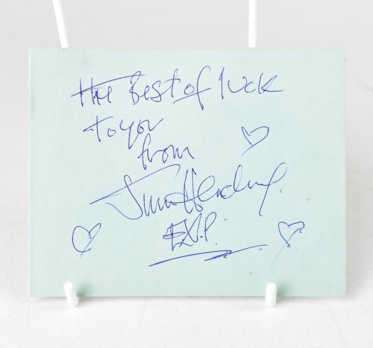 Lot 641 of 1493: JIMI HENDRIX; a page from an autograph book inscribed 'The Best of Luck to You from' bearing the signature of the rock legend, and further inscribed 'EXP'. We have not authenticated this signature, please satisfy yourself as to the veracity of the item prior to bidding.