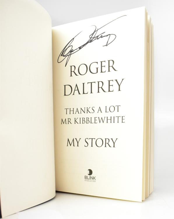 Lot 661 of 1493: ROGER DALTRY; 'Thanks a lot Mr Kibblewhite, My Story', and autobiography, bearing the rock legend's signature. We have not authenticated this signature, please satisfy yourself as to the veracity of the item prior to bidding.