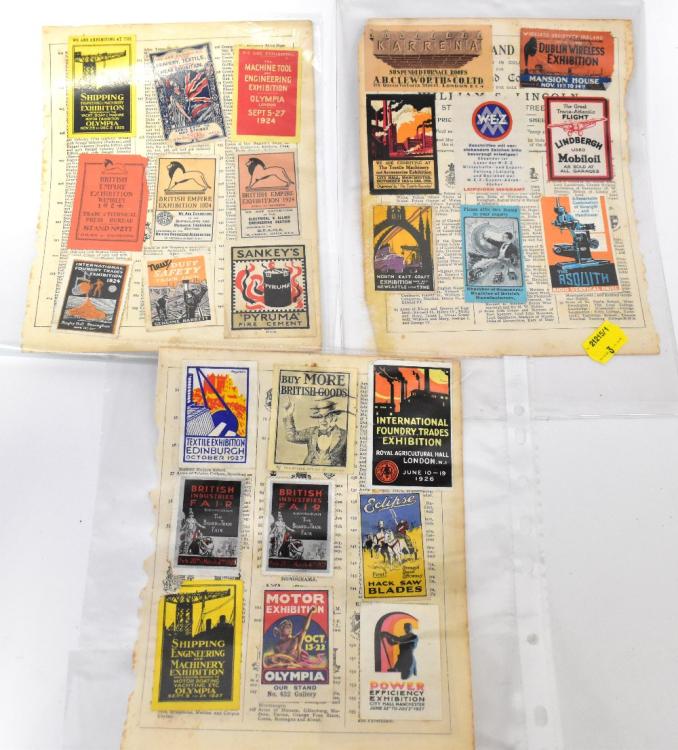 Lot 1019 of 1493: A collection of mostly early 20th century poster stamps, many industry exhibition advertising examples to include 'Shipping, Engineering and Machinery Exhibition, Olympia 1923', 'Royal Lancashire Show 1925', 'The Nation's Food Exhibition 1925', 'Motor Exhibition Olympia', 'Buy MORE British Goods', 'British Industries Fair', 'Power Efficiency Exhibition 1927', 'The Great Transatlantic Flight - Lindbergh Used Motor Oil, as Sold at All Garages', 'Dublin Wireless Exhibition', etc (approx 34).