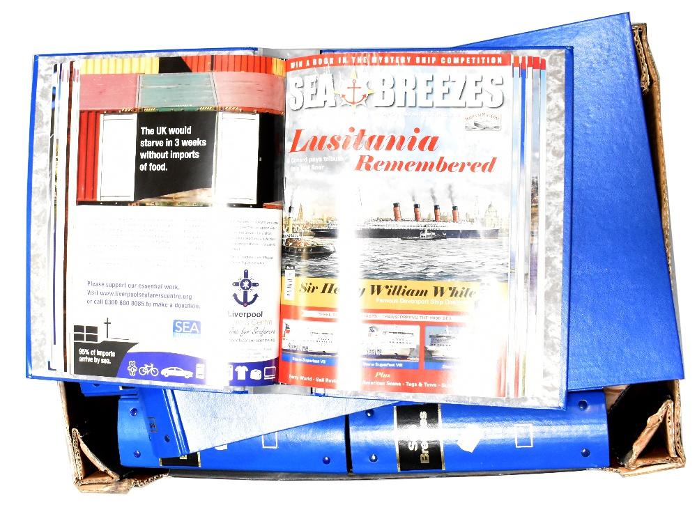 Lot 1024 of 1493: A collection of hundreds of maritime 'Sea Breezes' magazines, all contained in 'Sea Breezes' blue folders with gilt lettering, dates from 1970s through to the mid-2000s.