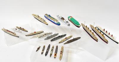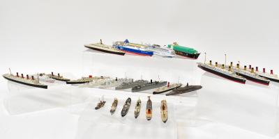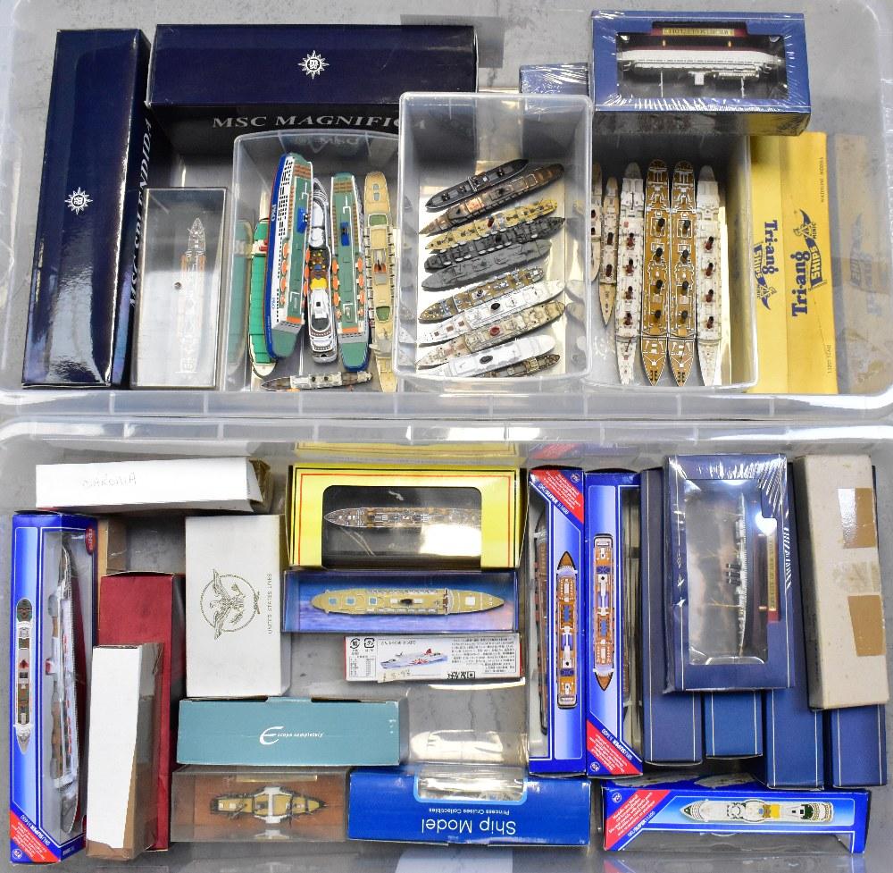 Lot 1104 of 1493: Various diecast and other model ships including two boxed Tri-ang ships Minic I:1200 scale waterline models, both the SS France M7075, United States Lines, Atlas Collections, Siku and MSC Magnifica, and various unboxed models (approx 54).