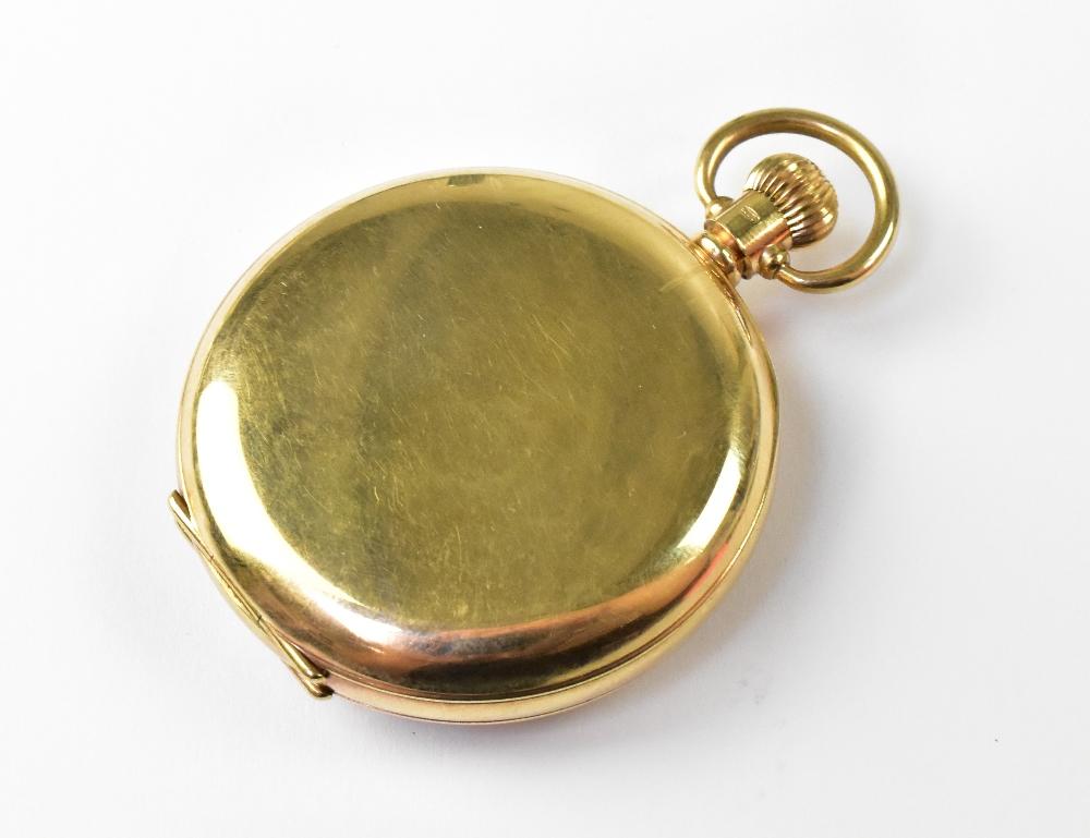 Lot 1441 of 1493: VERTEX; a hallmarked 9ct gold half hunter pocket watch, the circular white enamelled dial set with Roman numerals and smaller subsidiary seconds dial, crown wind movement, in a Birmingham hallmarked 9ct gold Dennison watch case, with inscription to inside cover 'Presented to Fred Ellis by the Directors of Woolcombers Ltd, in appreciation of his forty years' loyal and valued service to the company, 1912-1952', with fitted watch presentation box.