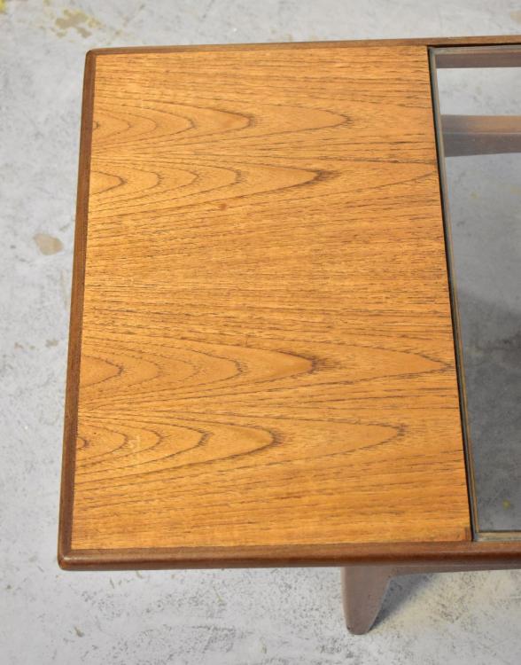 Lot 9 of 1054: G-PLAN; a retro teak glass-topped two-tier coffee table, 43 x 137 x 50cm.