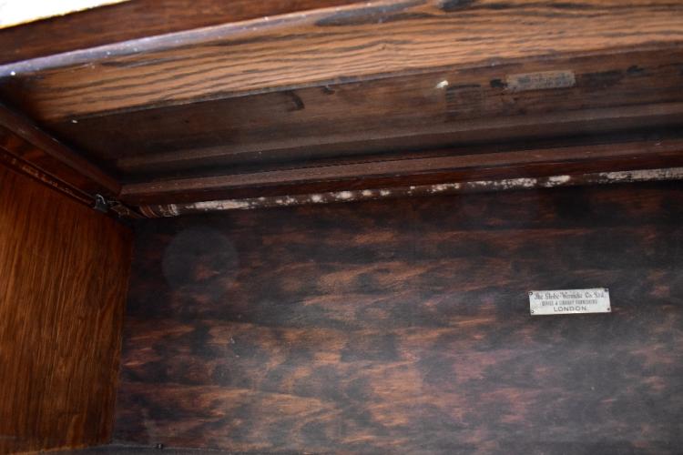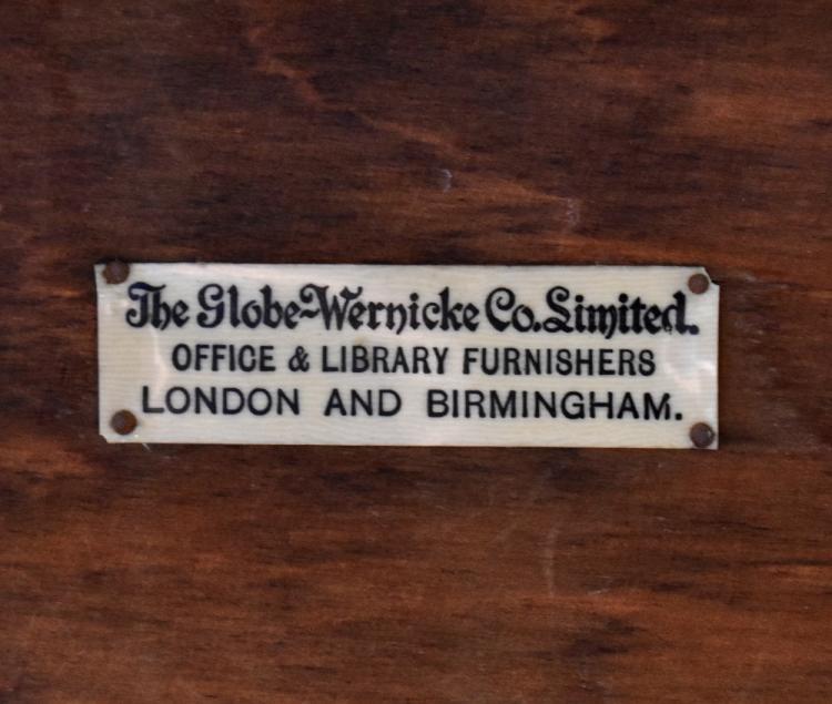 Lot 10 of 1054: GLOBE WERNICKE; an oak four-tiered bookcase, each tier with glazed door, ivorine labels to each tier, on plinth base, 144 x 86 x 28cm.